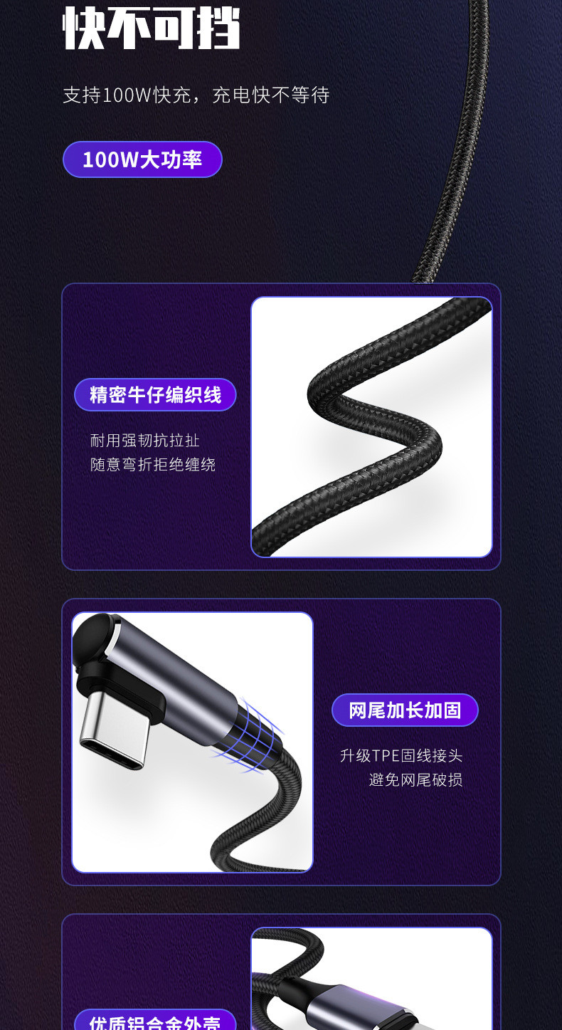 100W elbow braided data cable